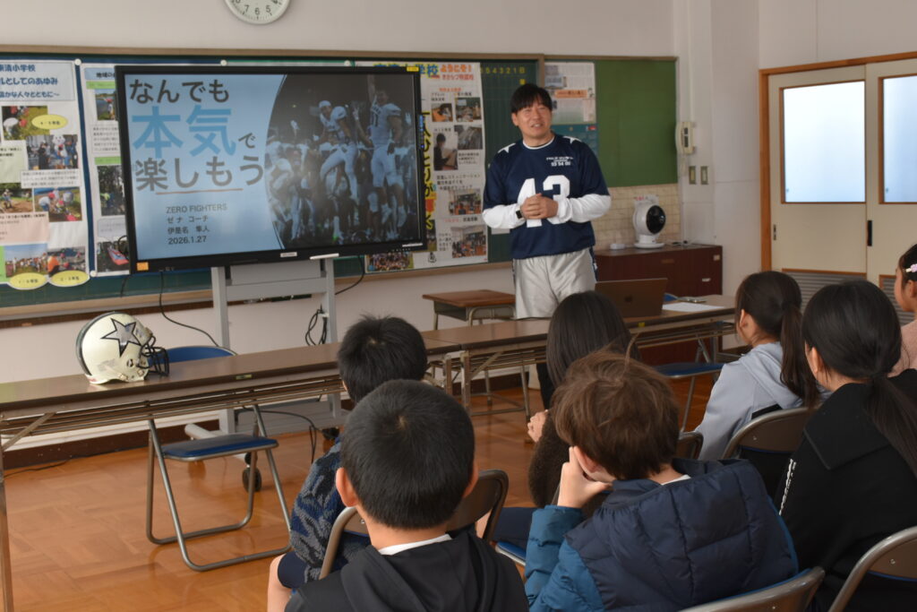 本日は木更津市立東清小学校児童の4・5・6年生に「キャリア教育授業」と「フラッグフットボール体験」それぞれを行いました。
